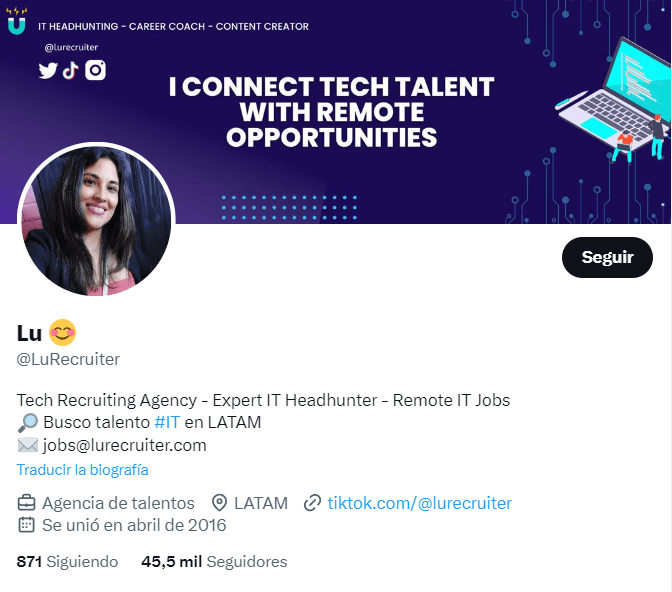 For the last years I’ve created a strong online community where I share valuable tips, career advices and job opportunities especially for the tech industry. You can find me as LuRecruiter in Tiktok, Twitter and LinkedIn